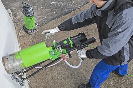 Установка алмазного бурения PLE 182 представляет собой комплект из опорной стойки BST 182 V/S и сверлильного мотора PLD 182. Предназначена для сверления отверстий с бетоне, асфальте, кирпиче или камне с подачей воды в зону сверления. Максимальный диаметр сверления 182 мм.