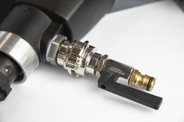 - Конструкцией предусмотрена система подачи воды в рабочую зону.