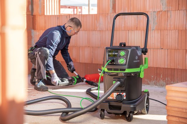 Промышленный пылесос Eibenstock DSS 35LP относится к классу безопасности М с максимальной концентрацией вредной пыли 0,1–1 мг/м3. Используется как для сухой, так и для влажной уборки на производстве или строительных объектах. Пылесос оснащен розеткой для подключения электроинструмента, при этом пылесос включается заблаговременно перед включением инструмента, а выключается с задержкой для исключения выброса пыли в атмосферу. Система Permanent Clean автоматически очищает фильтр пылесоса, сохраняя неизменно высокую производительность.