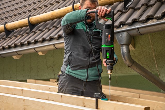 Ручная электродрель Eibenstock EHB 16/2.5 S R/L имеет мощность 1,4 кВт и может сверлить отверстия в дереве, алюминии, стали и других материалах во время строительных или монтажных работ. Максимальный диаметр отверстий - 65 мм по дереву, 28 мм по алюминию и 20 мм по стали. Двухскоростной редуктор позволяет подобрать оптимальную скорость вращения для различных ситуаций и обеспечивает высокий крутящий момент. Удобная эргономичная ручка и дополнительная регулируемая боковая рукоятка обеспечивают комфортное сверление в любом положении.
