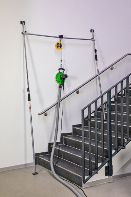 Пружинный балансировщик (подвес) Eibenstock для инструментов с балансиром Ergo Guide можно закрепить между полом и потолком. Рекомендуется для использования с фрезеровальными и шлифовальными машинами для облегчения работы оператора.