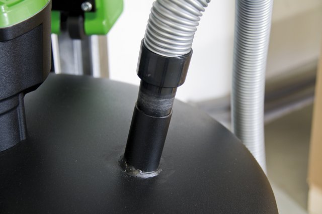 - Для работы без пыли предусмотрены патрубок для подключения пылесоса Ø35 мм и разгрузочная воронка с щетками.